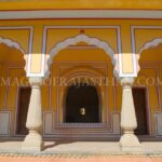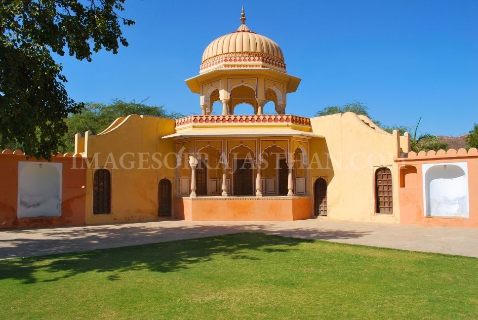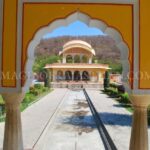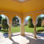 Kanak Garden is a beautiful and serene complex located at the foothills of the Nahargarh Fort along the main Jaipur-Amer road. Often described as a ‘mini Vrindavan’ this picturesque valley was designed in the 18th century by Maharaja Sawai Jai Singh II the founder of Jaipur. The garden complex is a masterpiece of landscape architecture blending Mughal and Rajput styles with its symmetrical arrangement of fountains, marble columns, intricate chhatris and a sacred temple. Positioned in the crucial Ghati (valley) between the hills, it offers a tranquil retreat and a stunning vista of the Jal Mahal and the surrounding Aravalli hills.