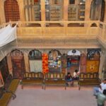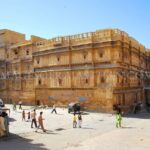 Patwon Ki Haveli, a magnificent cluster of five intricately carved mansions stands as a crowning jewel of Jaisalmer’s architectural heritage and a powerful testament to the city’s golden age of trade. Constructed in the early 19th century for a wealthy merchant family the havelis are renowned globally for their extraordinary facade entirely crafted from yellow sandstone. This spectacular structure glows with a magical golden hue under the desert sun showcasing a stunning fusion of Rajputana and Mughal architectural styles and offering an unparalleled glimpse into the opulent lifestyle of the merchant princes (or brocade merchants) who once controlled the Silk Route. Today the complex serves as a remarkable museum and a living monument to Rajasthani craftsmanship.